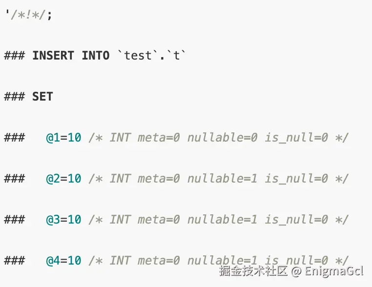 上述内容我们无法解析,如果希望看到二进制对应的内容,可以使用命令:mysqlbinlog -vv binlog.xxx,结果如下: