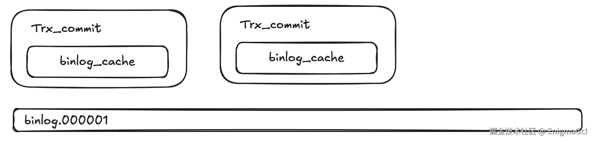 binlog 中每个事务在 binlog 文件中都是连续存储的,不会出现交错的情况,这就是通过 binlog_cache 来实现的,只有当事务提交时,才会将整个事务的 binlog 尝试写到磁盘,如下所示: