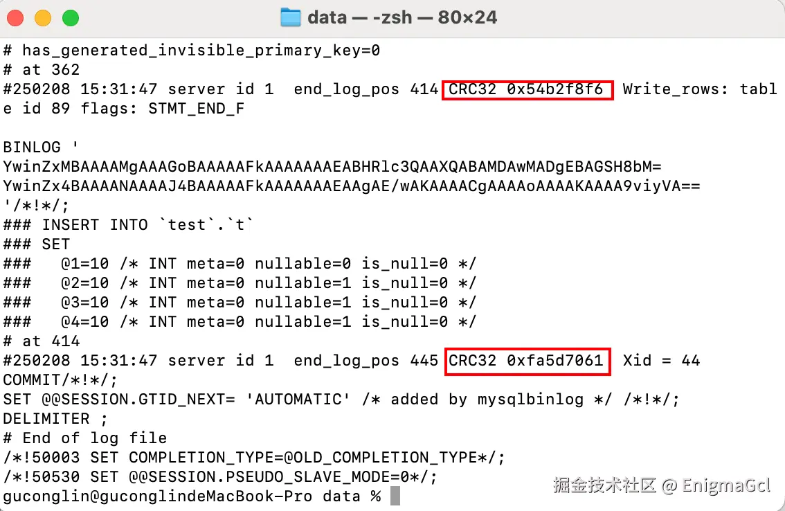 binlog 中每个 event 都会计算 CRC32 结果,这就是 checksum,影响很小,如下所示: