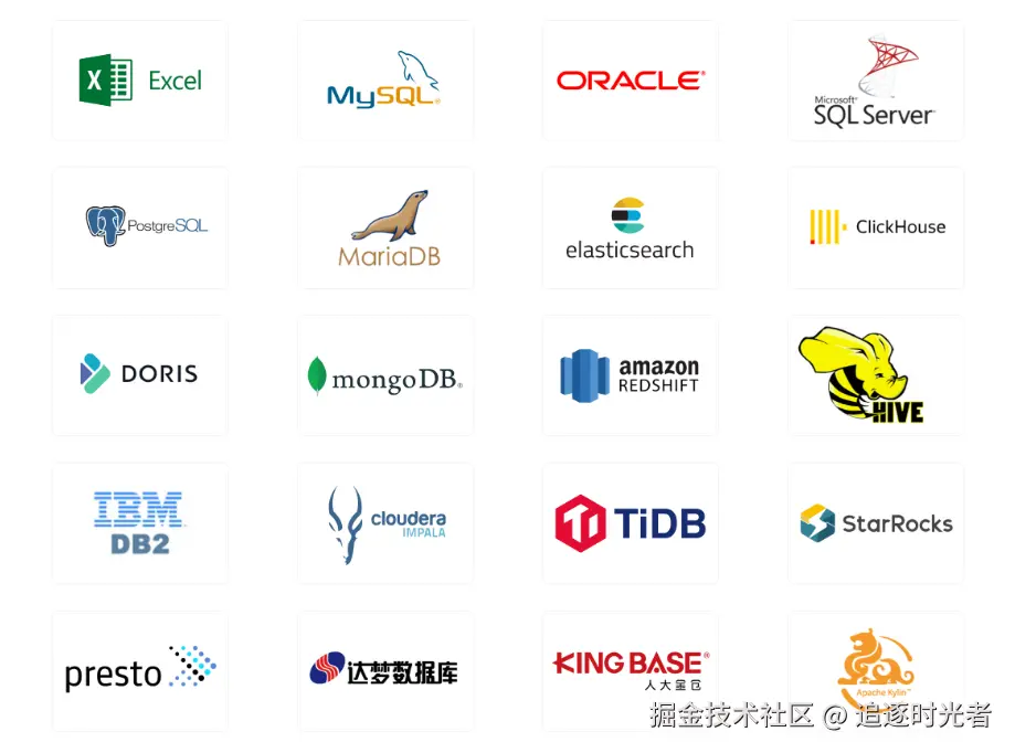 DataEase 支持 OLTP、OLAP、数据仓库、数据湖、数据文件 和 API 接口等各种数据源。