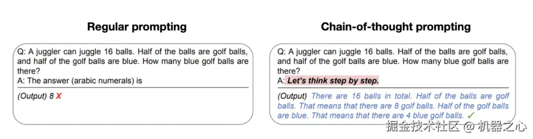 一个经典 CoT 提示示例,来自论文《Large Language Models are Zero-Shot Reasoners》
