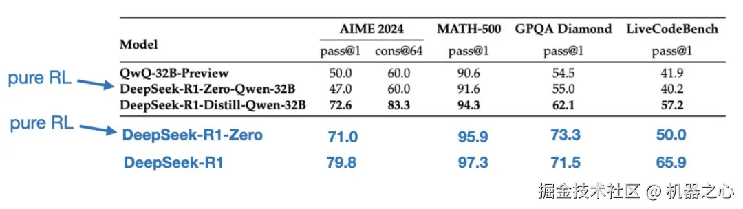尽管如此,这种 RL 过程类似于常用的 RLHF 方法,后者通常应用于偏好微调 LLM。更多详情可参阅《LLM 成功不可或缺的基石:RLHF 及其替代技术》。但是,如上所述,DeepSeek-R1-Zero 的主要区别在于他们跳过了用于指令调整的监督微调(SFT)阶段。这就是他们将其称为「纯」RL 的原因。(不过需要指出,LLM 背景下的 RL 与传统 RL 有很大不同。)