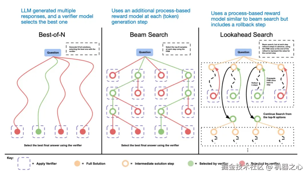 不同的基于搜索的方法依赖于基于过程奖励的模型来选择最佳答案。