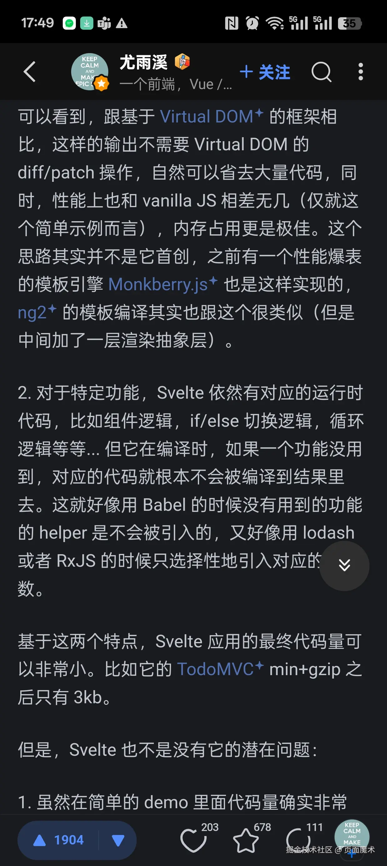 随着两款无虚拟 DOM 框架的强势崛起:
