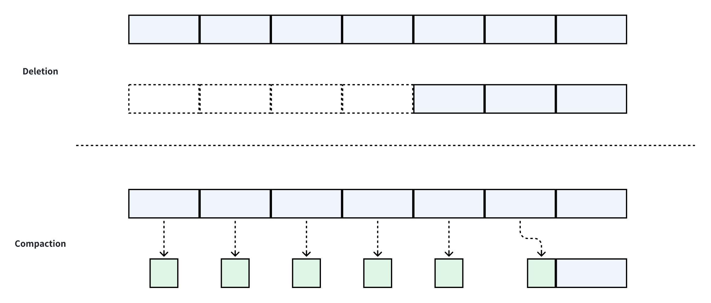 一般来说,如果你的业务关注的是 key 的终态 value(也就是 KV 之类的场景),例如记录用户每日的行走步数,或者账户的余额,那么 compact 比较适合[2]。此外,compact 策略下,业务的 key 最好是可枚举的少数值。key 取值过于分散将会导致 compaction 效果大打折扣,这种场景可以考虑采用 delete + compact 的策略。如果没有明显的 KV 特征,一般采用 delete 策略即可。