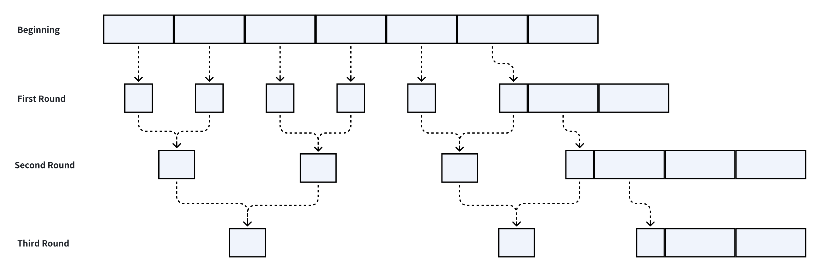 本阶段将构建 offsetMap,其中 key 为消息的 key,value 为绑定该 key 的最新消息的 offset。并根据该 map,分批构建新 segment。大致流程如下: