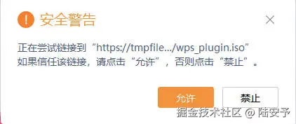由此可见,WPS在PDF打开时,默认是允许, 且域名缩略显示,易被伪造。稍不注意就点击允许导致木马下载至本地,风险较大。