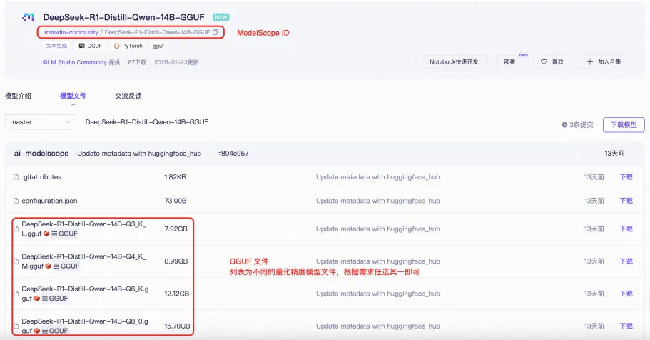 ModelScope ID:lmstudio-community/DeepSeek-R1-Distill-Qwen-14B-GGUF GGUF 文件:DeepSeek-R1-Distill-Qwen-14B-Q4_K_M.gguf