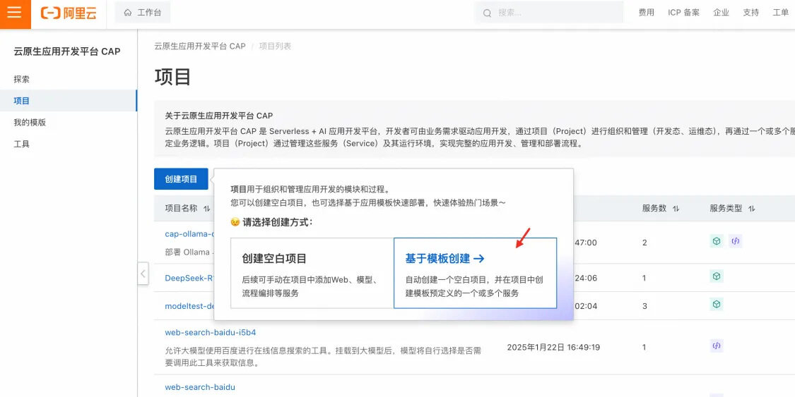 依托于阿里云 函数计算 FC 算力,Serverless+ AI 开发平台 Cap 现已提供模型服务、应用模版两种部署方式辅助您部署 DeepSeek R1 系列模型。完成模型部署后,您即可与模型进行对话体验;或以 API 形式进行调用,接入 AI 应用中。欢迎您立即体验。