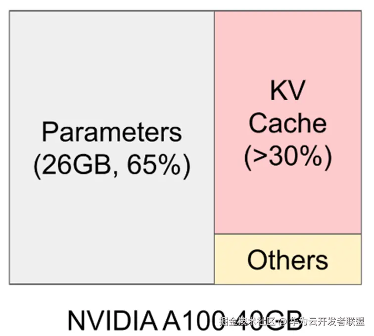 在大模型的推理过程中有很多的KV重复计算,如果序列长度越长重复计算越多, KV Cache是显存资源巨大开销的元凶之一,如下图所示,在模型推理时,KV Cache在显存占用量可达30%以上。