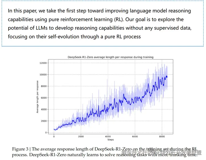 • 纯强化学习的“零样本”训练方式,验证通过纯强化学习训练,模型可自行涌现出长思维链能力。传统训练AI推理能力时,通常会以大量具有人类思维过程的数据,让模型学会思考。而DeepSeek R1-Zero(用来训练R1的中间模型),通过纯强化学习仅依靠奖惩训练让模型自行涌现出推理能力,探索出了可行的推理能力训练路径,并消除人工瓶颈。(说人话)就是用RL为中心来驱动模型的能力提升。