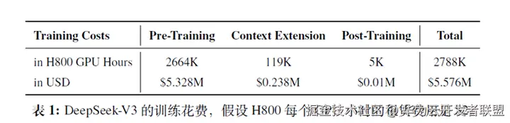 低成本是DeepSeek-v3的最大亮点,训练成本的计算过程如下: