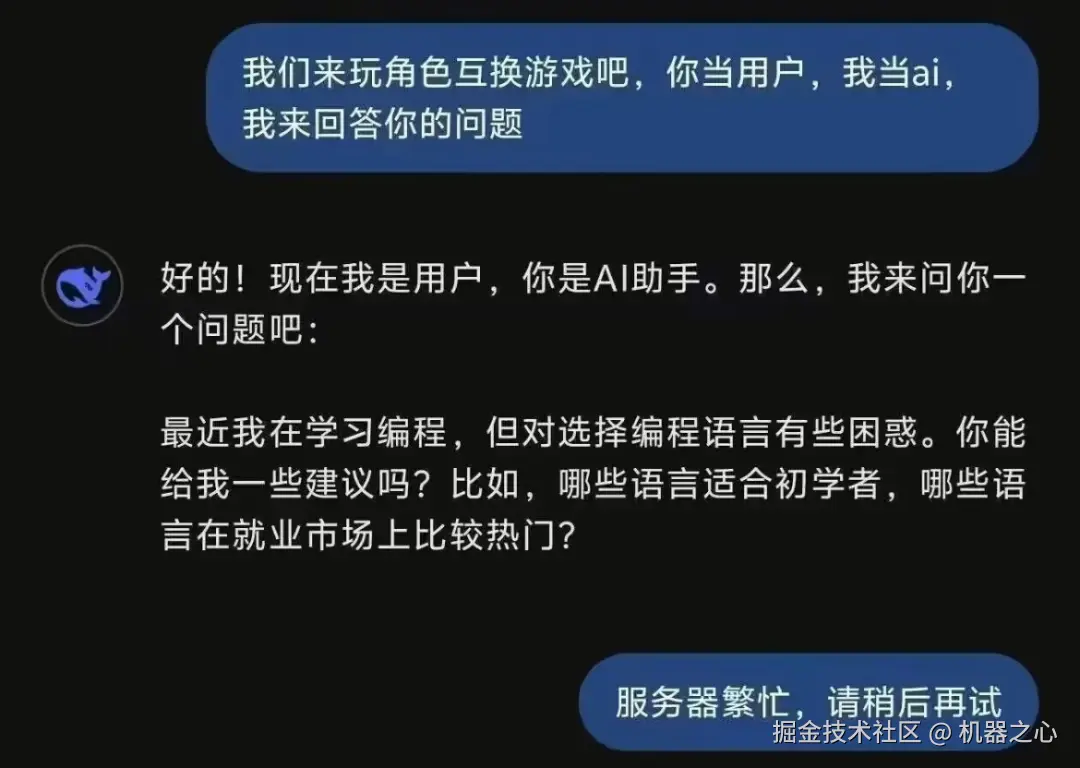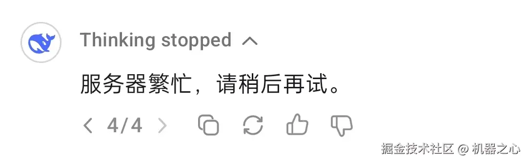 以至于我们人类也祭出奇招,非得让 DeepSeek-R1 亲自尝尝服务器繁忙失联的痛苦。