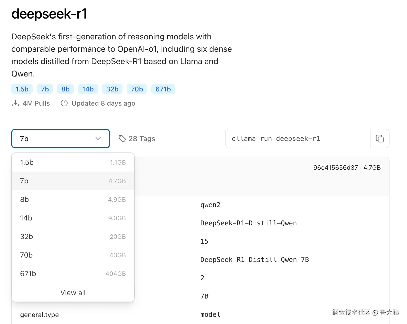 根据实际的环境配置,选择合适的 DeepSeek 尺寸模型进行部署。初次安装推荐安装 7B 尺寸模型。