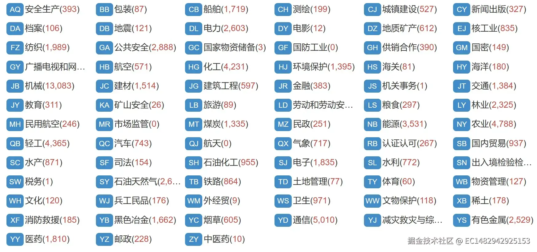 支持的行业代码