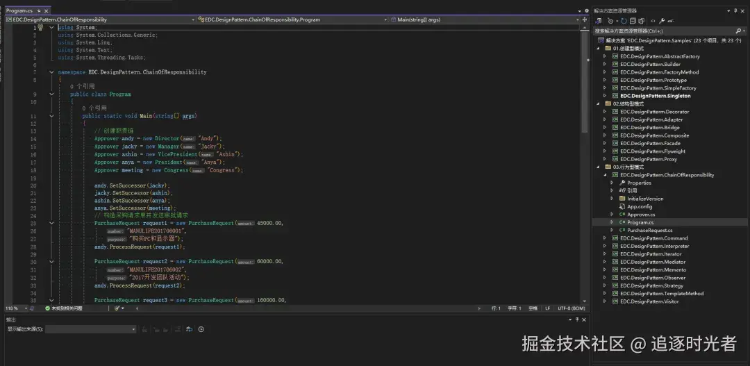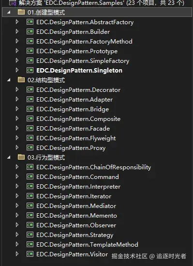 - 项目简介: 23种面向对象设计模式示例代码(C#实现)。