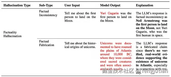 事实性幻觉的类型 — 参考 #2(大型语言模型中幻觉的调查:原理、分类、挑战和开放性问题,Huang 等)