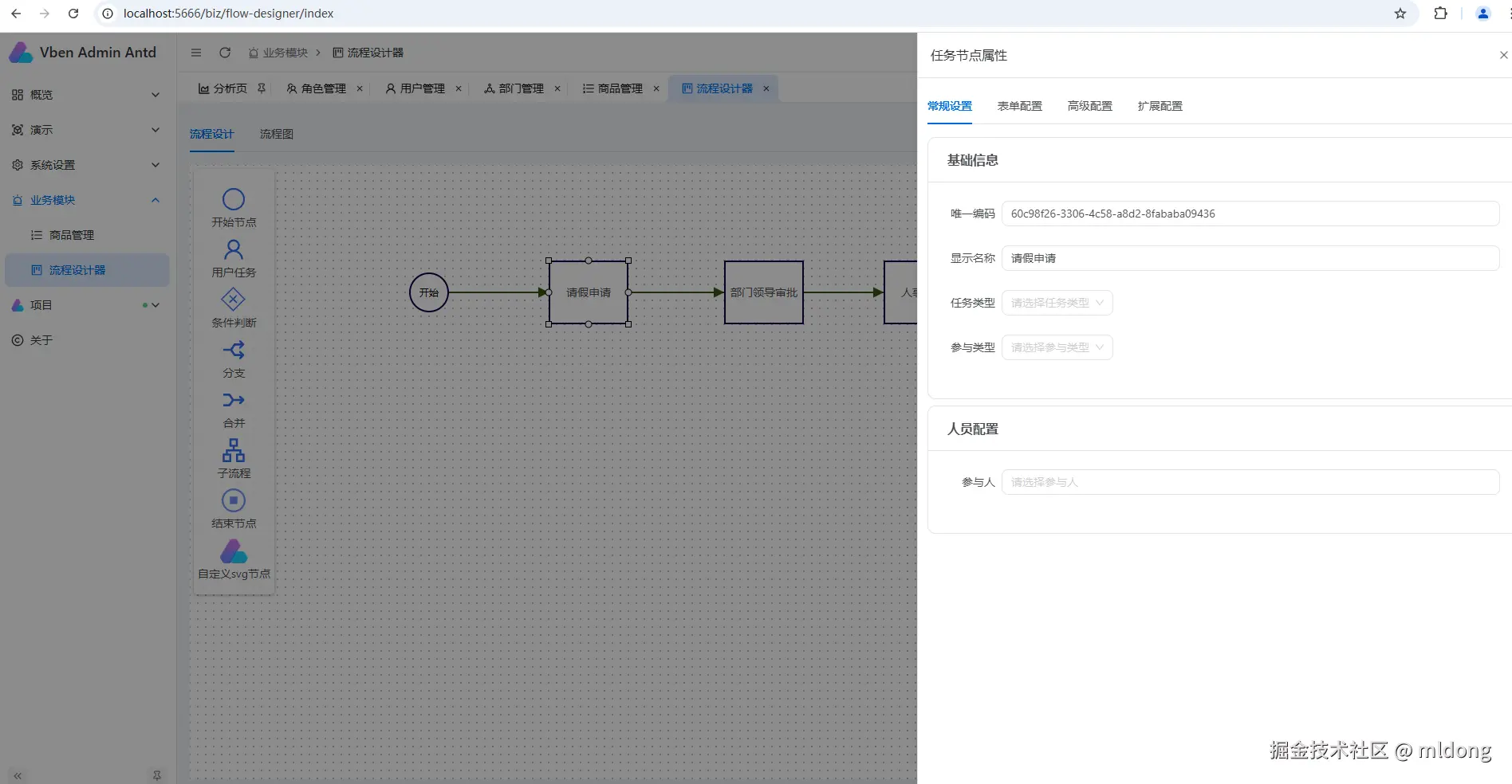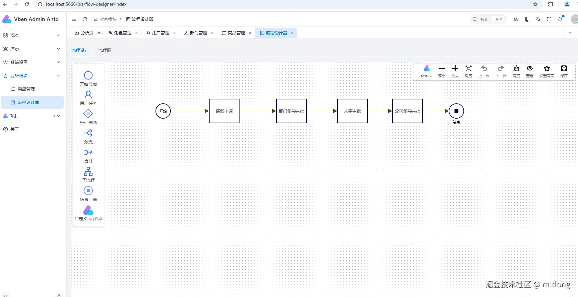 在vben5框架下集成mldong-flow-designer-plus,并对其进行了二次开发。