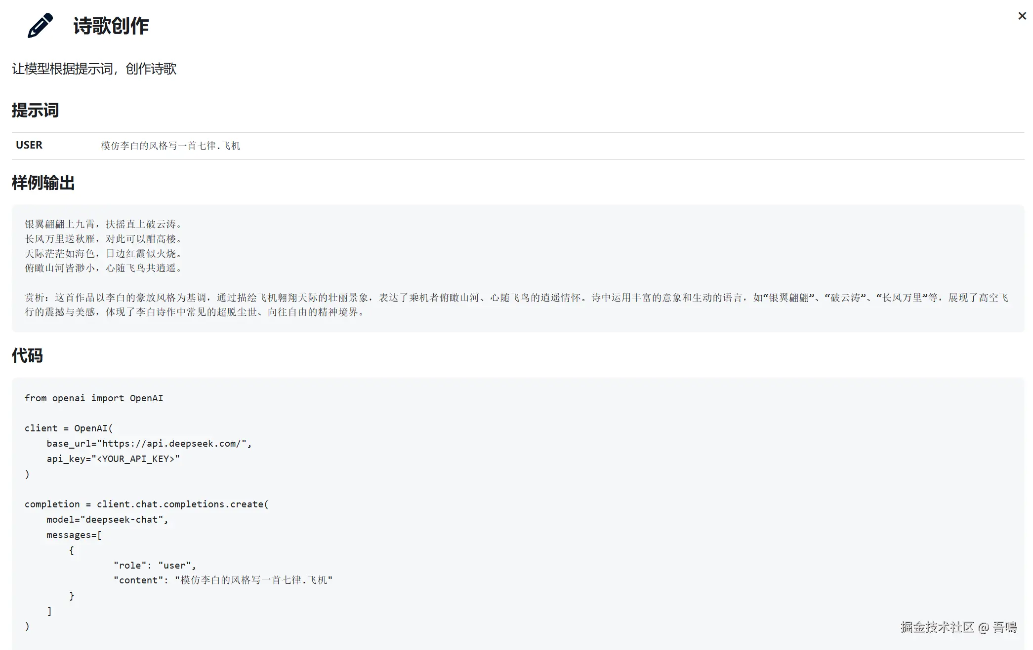 让模型根据提示词创作散文,或者让模型根据提示词,创作诗歌。