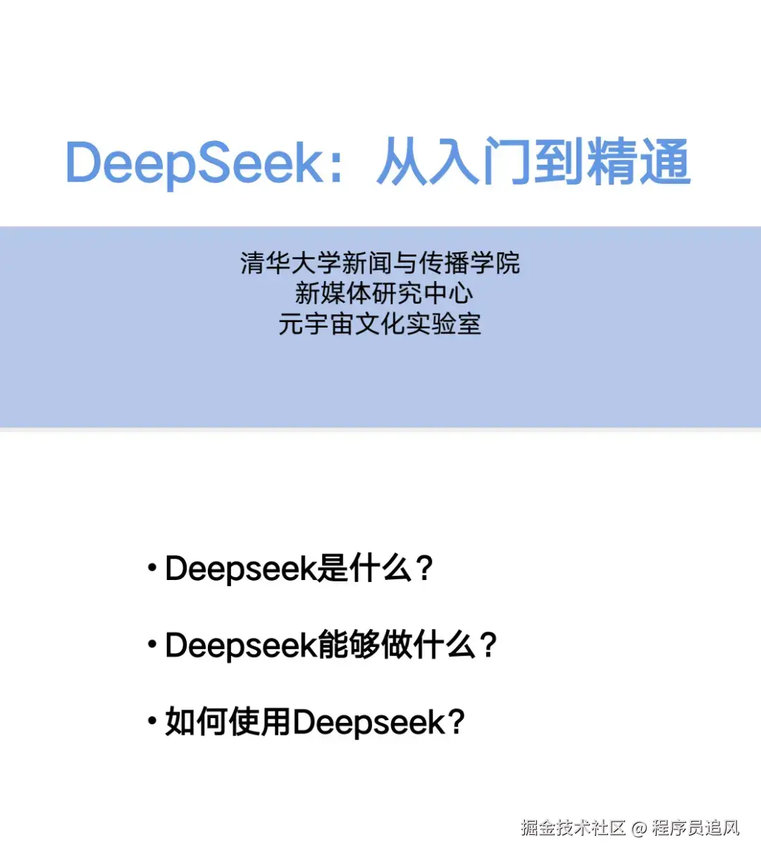 DeepSeek从入门到精通是由清华大学新闻与传播学院新媒体研究中心元宇宙文化实验室的余梦珑博士后及其团队撰写。文档的核心内容围绕DeepSeek的技术特点、应用场景、使用方法以及如何通过提示语设计提升AI使用效率等方面展开,帮助用户从入门到精通DeepSeek的使用。