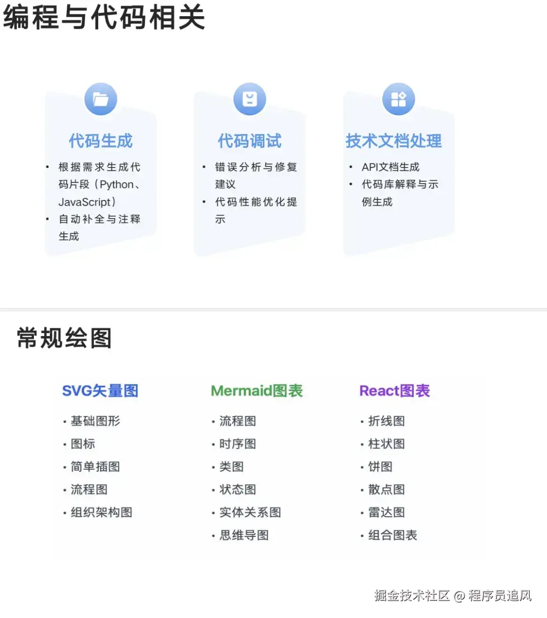 编程辅助:自动生成代码片段、调试错误、优化性能,还能生成技术文档。
