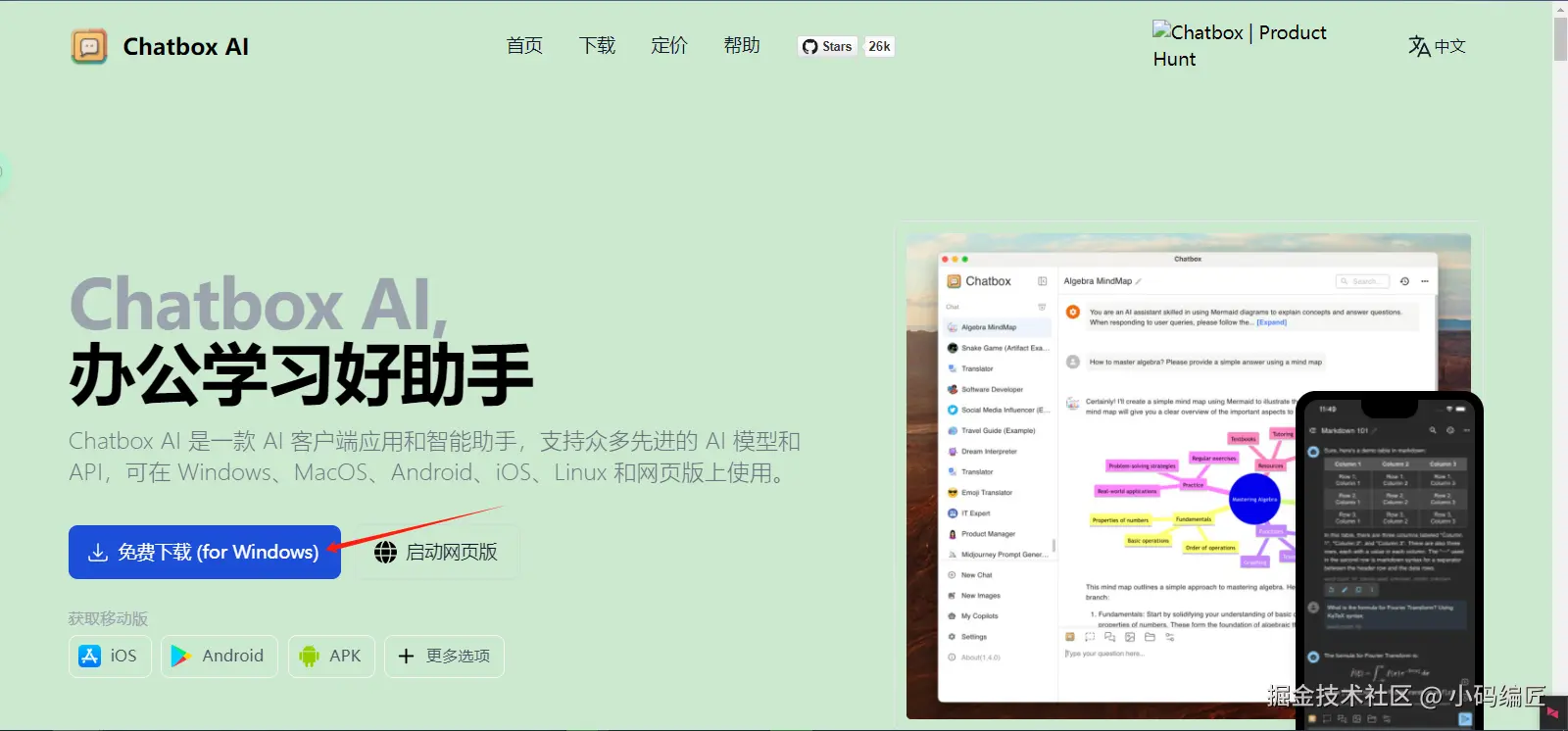 下载ChatBox AI,chatboxai.app/zh,也可以使用网页版…