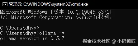 输入:ollama -v有版本号就说明安装好了,在任务栏右下角有个羊驼的图标。
