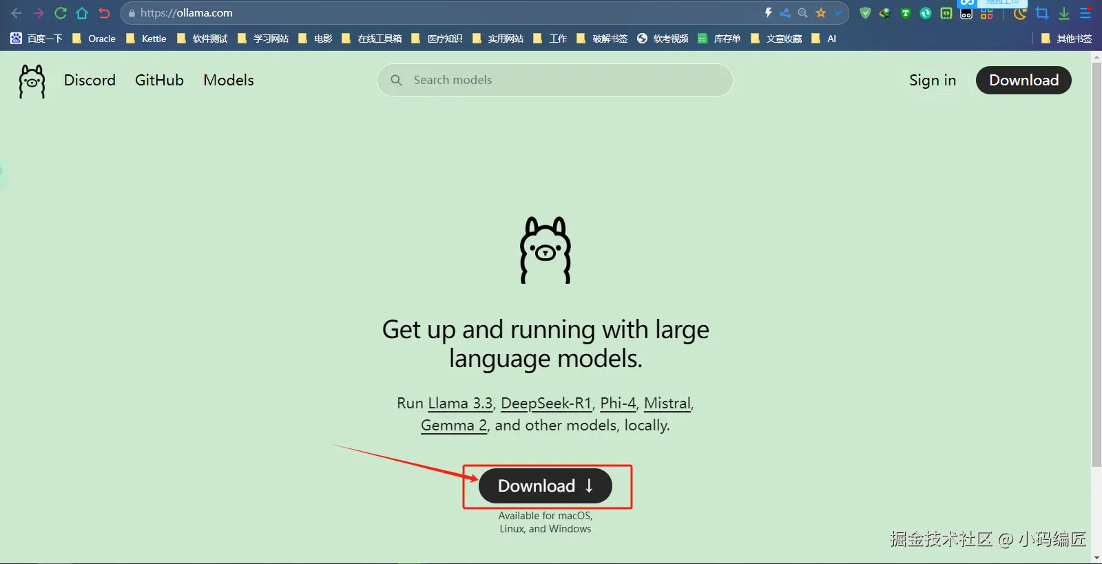 首先先下载Ollama,进入官网,官网地址:ollama.com/,点击Download