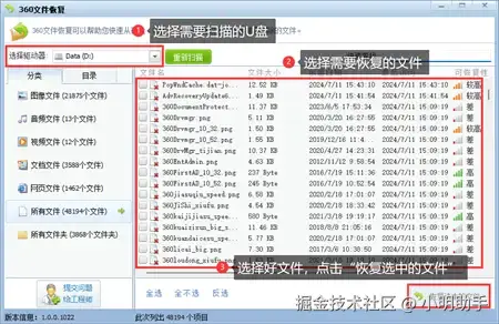 方案三:利用360安全卫士的文件恢复工具找回U盘误删文件
