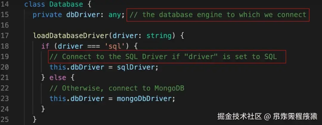 class Database { private String uri; private Provider provider; public Connection connection; // 设置为public}const Database db = new Database("mysql-db:8100", sqlEngine);db.connect();db.connection.close(); // 违反原则