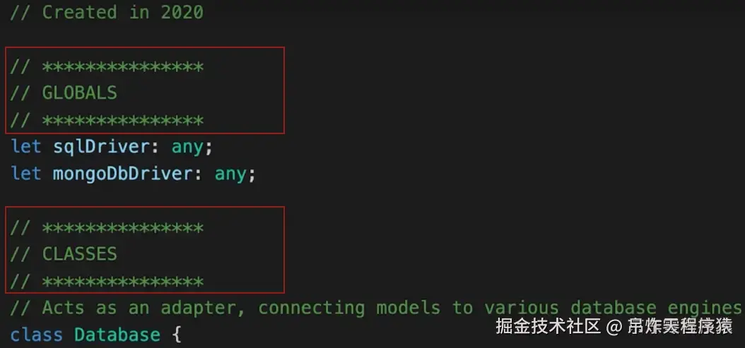 使用大段的块注释作为分隔标记,全局变量、类这些关键字就足够标记,这些注释也是多余的