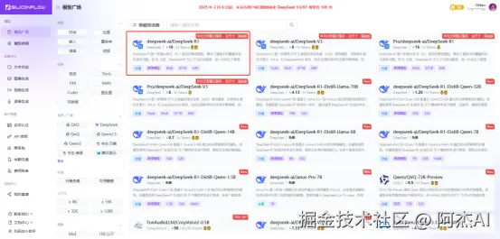 DeepSeek服务器繁忙,教你怎么解决! 阿杰AI 2025-02-11 95 阅读1分钟 许多用户近期在使用DeepSeek时可能遇到了服务器繁忙的状况,或者在注册后无法充值,从而无法正常使用服务。 目前,有几个替代平台可供参考,它们同样提供完整功能的DeepSeek版本,等DeepSeek恢复之前可以先顶一顶。 一、硅基流动 注册就送免费14元的额度 二、火山方舟 注册送50万Token 希望大家多多点赞评论关注支持,之后也会有更多相关文章发布!
