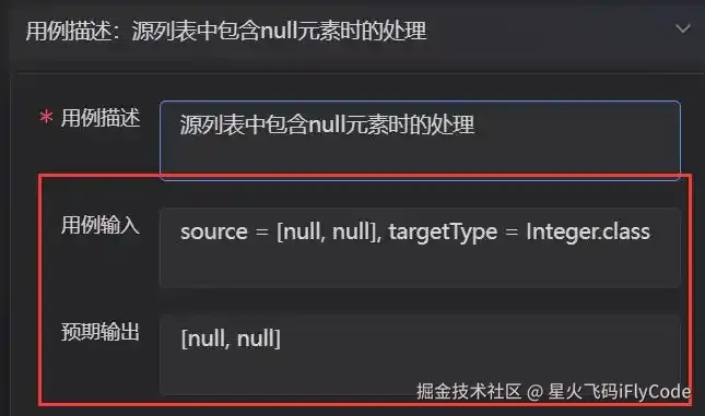 反向用例:自动生成,用于测试空值、边界值、异常场景,可手动修改。