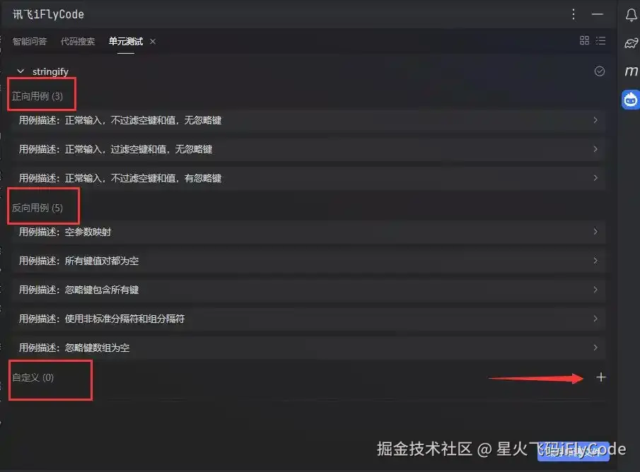自定义:当iFlyCode生成的用例不符合预期时,我们可以进行手动输入用例来人工补偿。