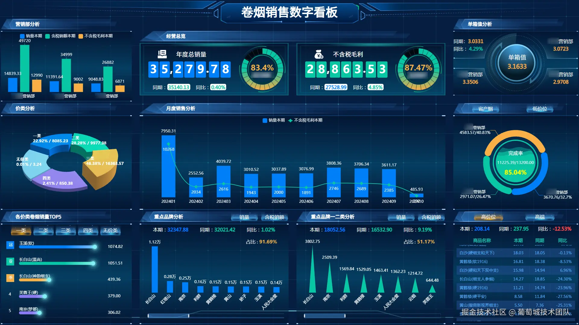 因此在进行数据分析的过程中,要关注重点品牌的增长率、特别是二类及以上产品的销售同比增长率,以评估品牌的市场扩张速度;评估重点品牌销售额占本单位总销售额的比例,揭示品牌在收入结构中的地位;关注高价位卷烟和高端卷烟的销售同比增长率,以洞察市场对高端产品的需求趋势;跟踪行业共育品规的引入数量和单规格平均销量,以及行业共育品规销量的同比增长率,以评估行业合作项目的成效和市场接受度。
