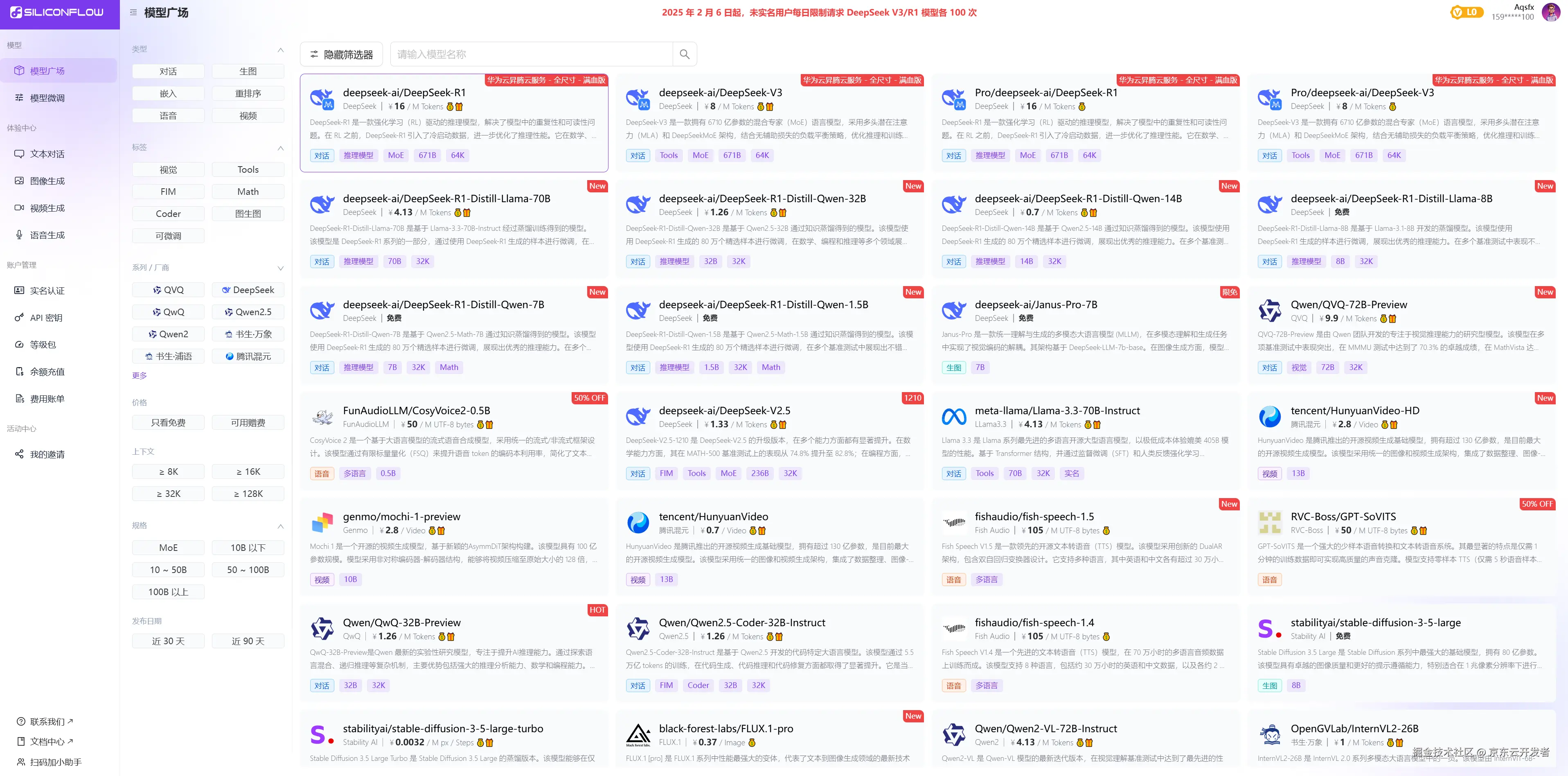 下面还有DeepSeek-V3模型,以及DeepSeek最新发布的图像生成模型deepseek-ai/Janus-Pro-7B,点击就可以直接体验啦!