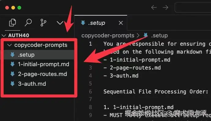 其中.setup描述AI Agent需要执行的步骤,其他文件是描述应用实现细节的结构化提示词