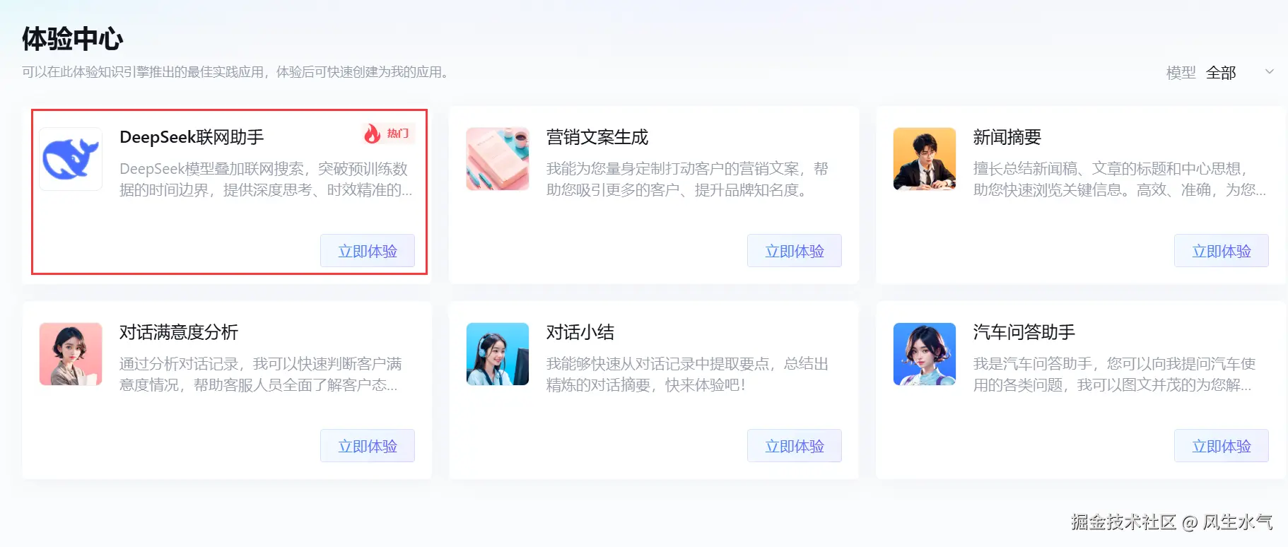 其中,就有我们的DeepSeek联网助手,我们可以点击【立即体验】进入进行体验。