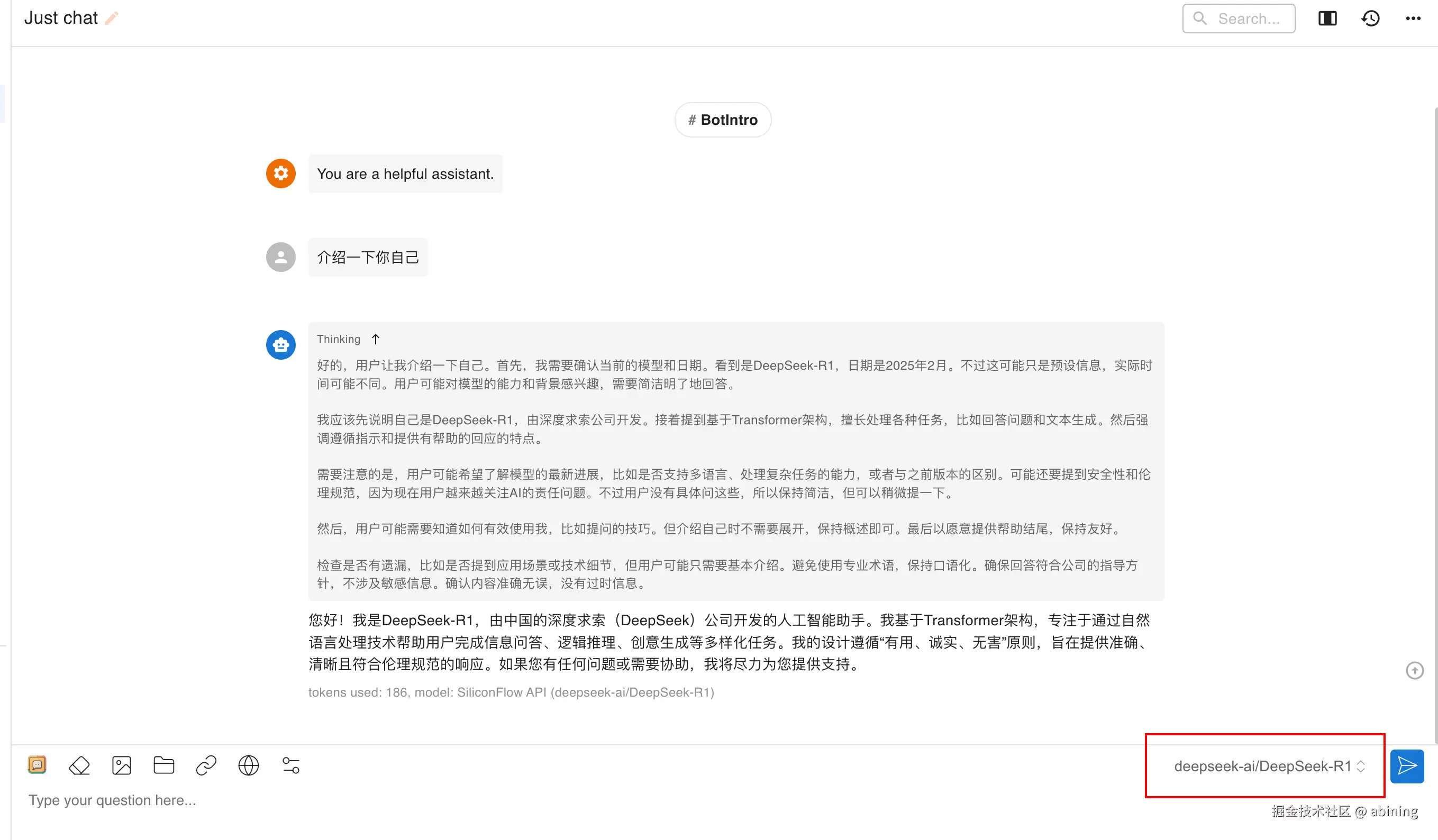 输入"介绍一下你自己",感受丝滑响应: