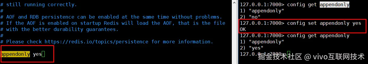 由于 AOF 功能开启后对 Redis 性能会产生一定影响,因此 AOF 功能默认是关闭的。我们可以通过修改 redis.conf 配置文件中的配置参数来开启 AOF 功能,还可以通过“config set”命令在线动态的开启和关闭 AOF 功能。