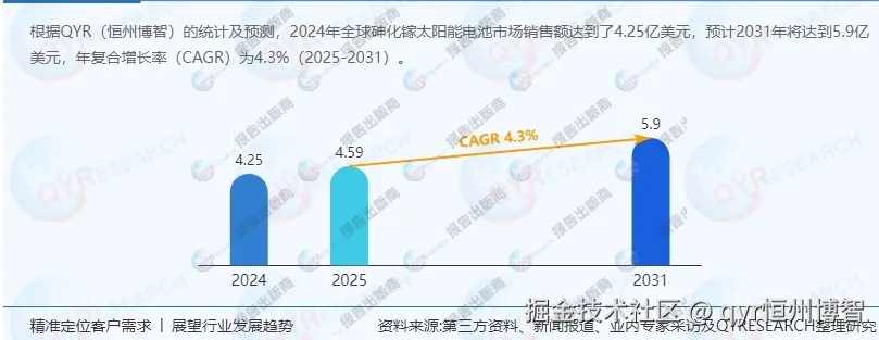 根据QYResearch最新调研报告显示,2024年全球砷化镓太阳能电池市场销售额达到了4.25亿美元,预计2031年将达到5.9亿美元,年复合增长率(CAGR)为4.3%(2025-2031)。随着技术的不断进步和成本的降低,砷化镓太阳能电池市场有望进一步扩大到新的领域和应用。特别是在太空和专业应用领域,对高效太阳能转换解决方案的需求不断增长,为市场提供了广阔的发展空间。