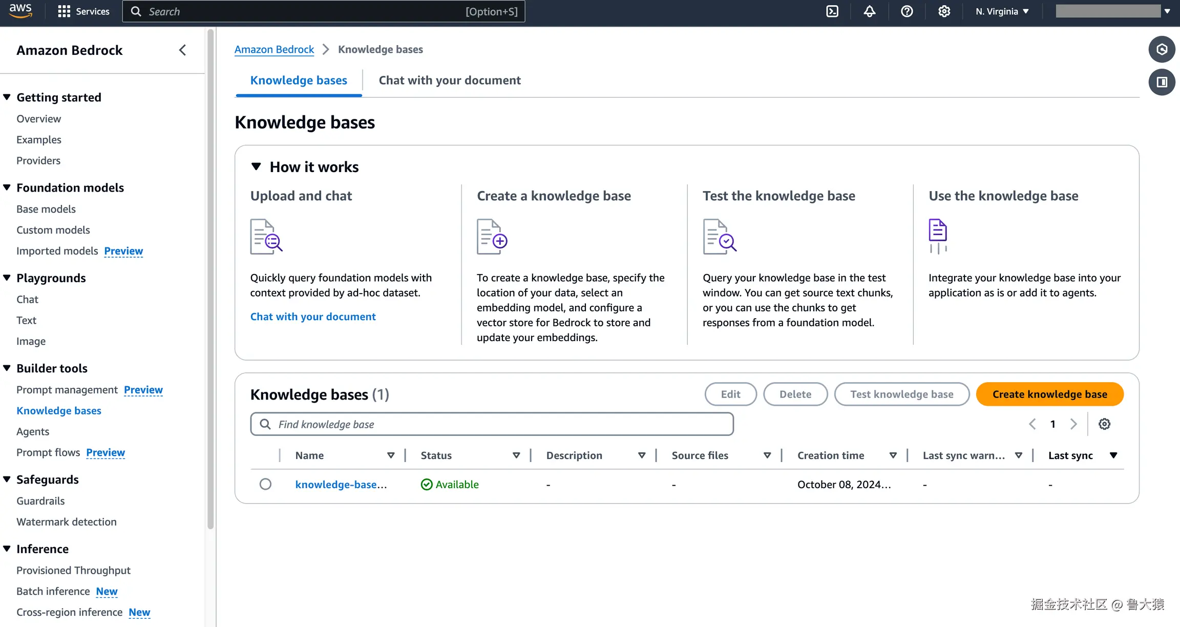 访问 AWS Bedrock,创建 Knowledge Base 服务。