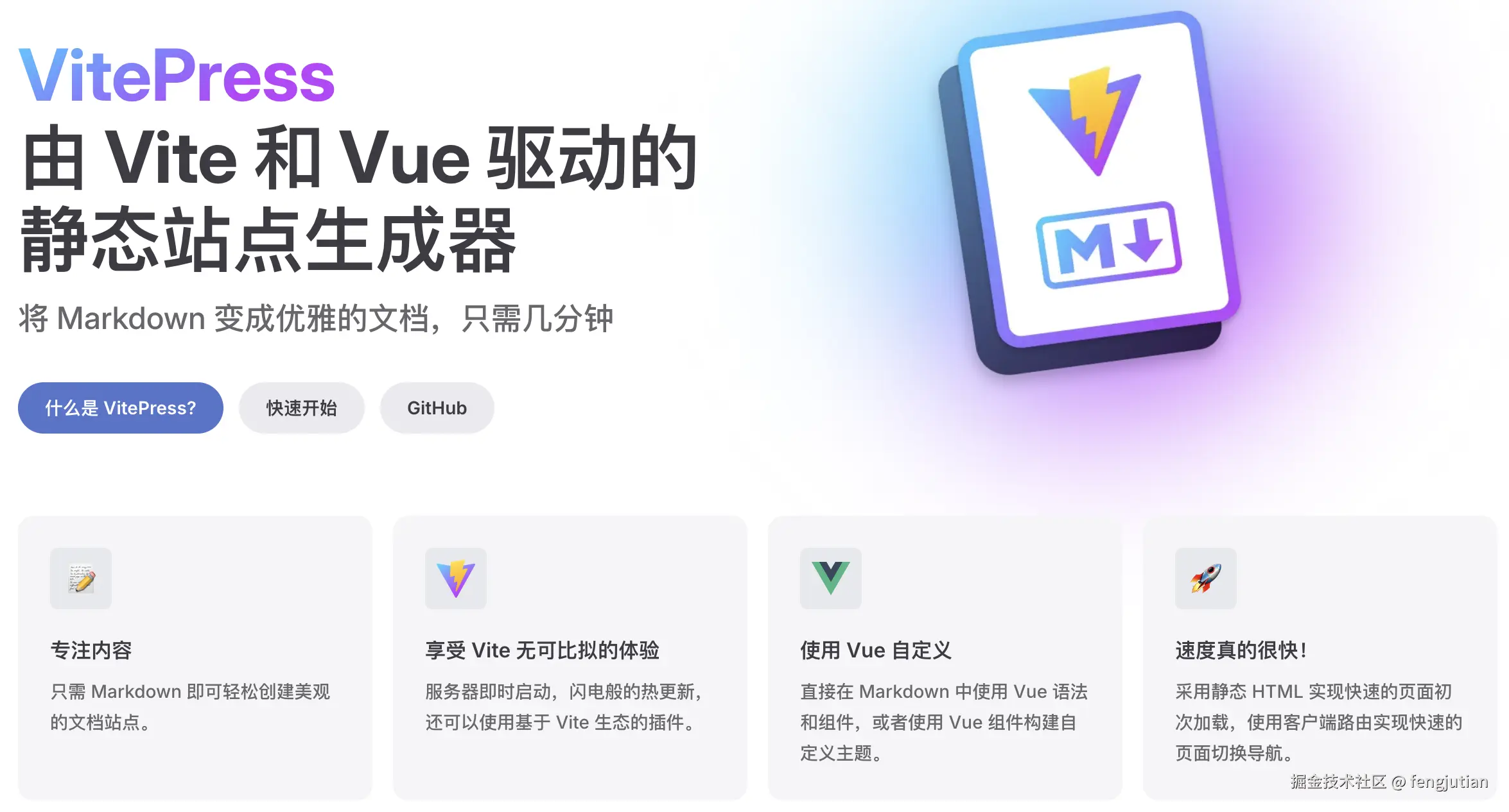 简介:由 Vite 和 Vue 驱动的静态站点生成器