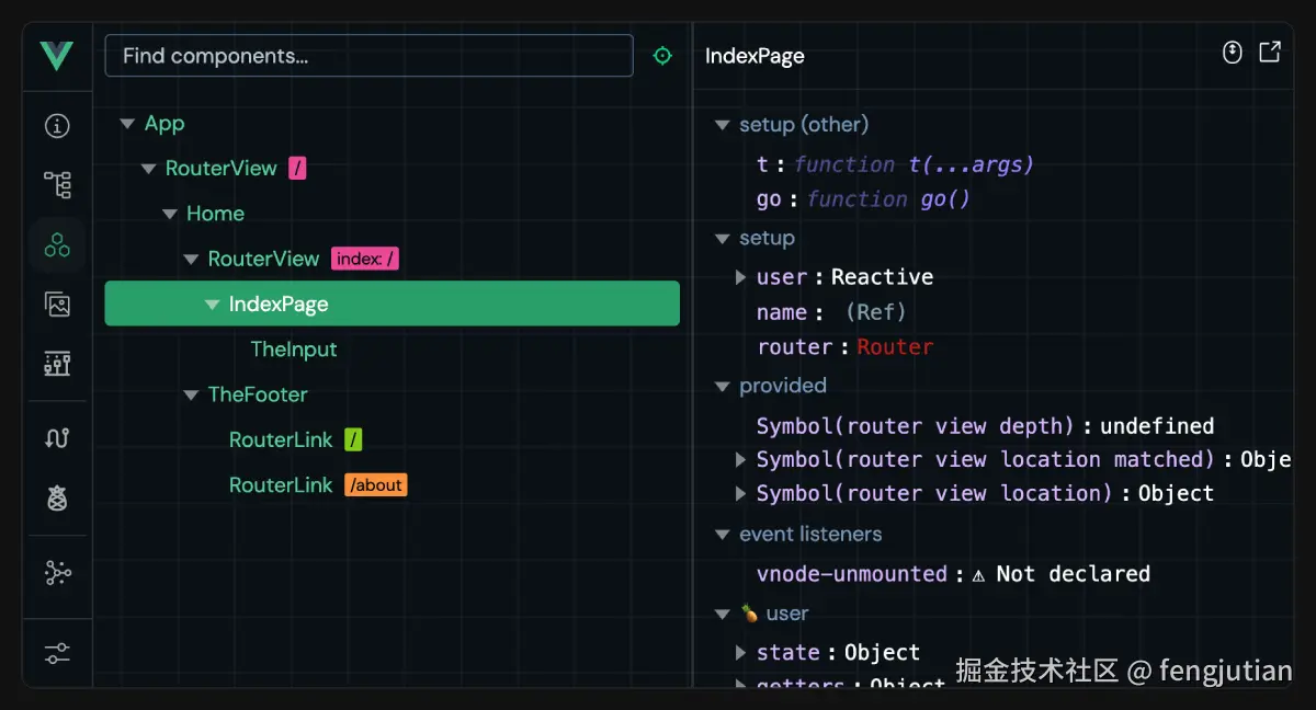 Vue 的浏览器开发者插件使我们可以浏览一个 Vue 应用的组件树,查看各个组件的状态,追踪状态管理的事件,还可以进行组件性能分析。