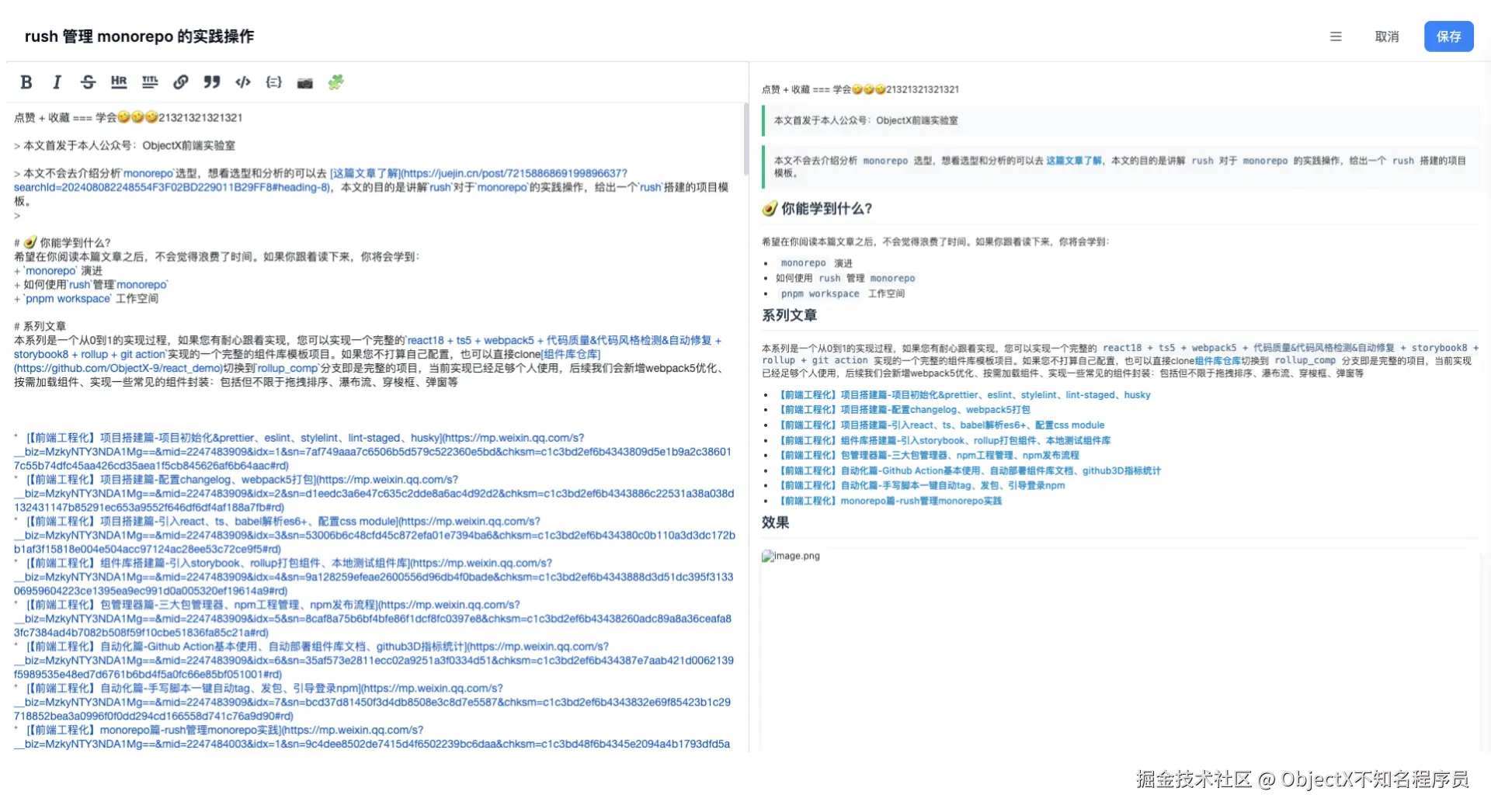 在开源md编辑器的基础上实现的自定义渲染和编辑,主要是自定义了一些工具条和渲染