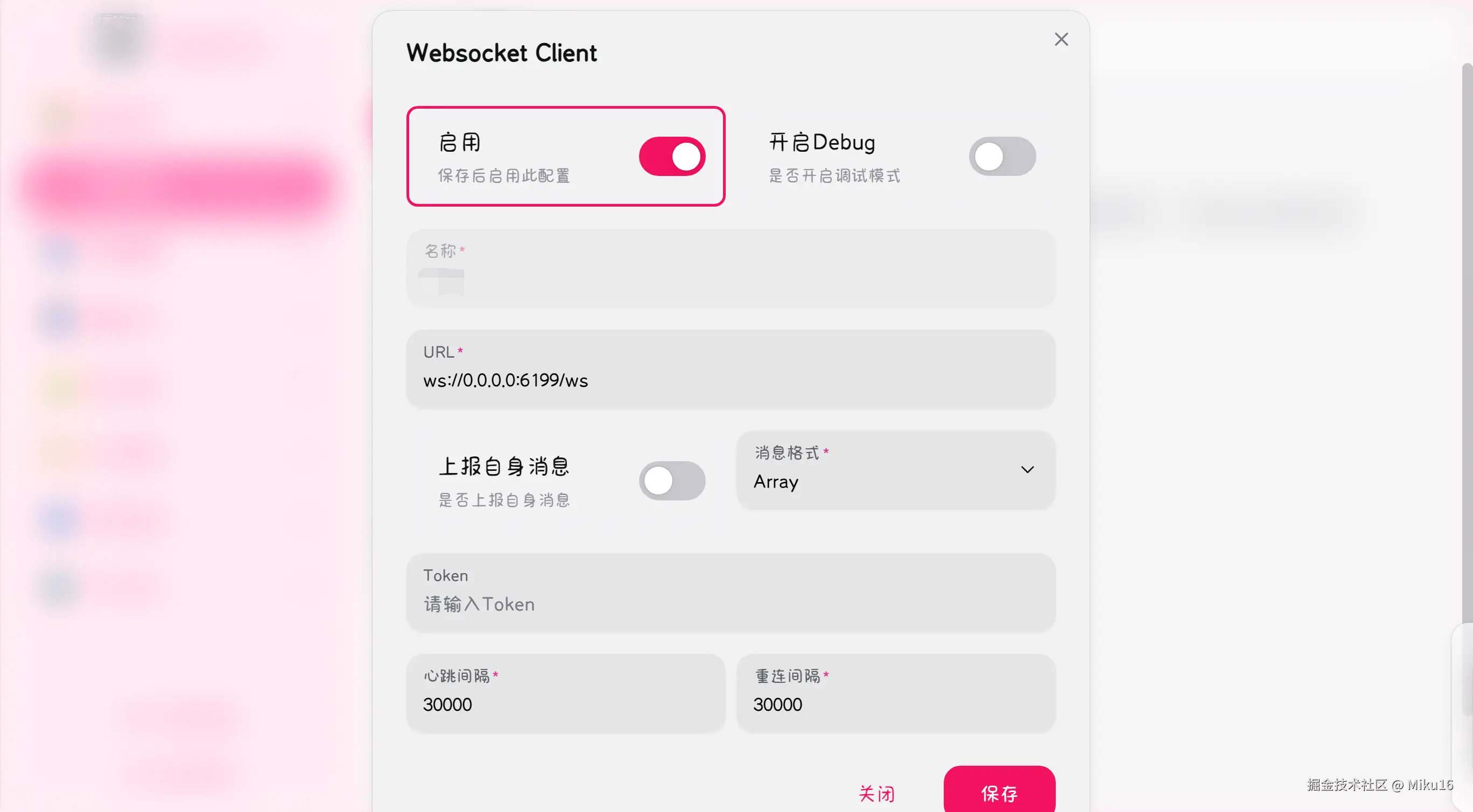 在Websocket Client配置页面进行如下配置: