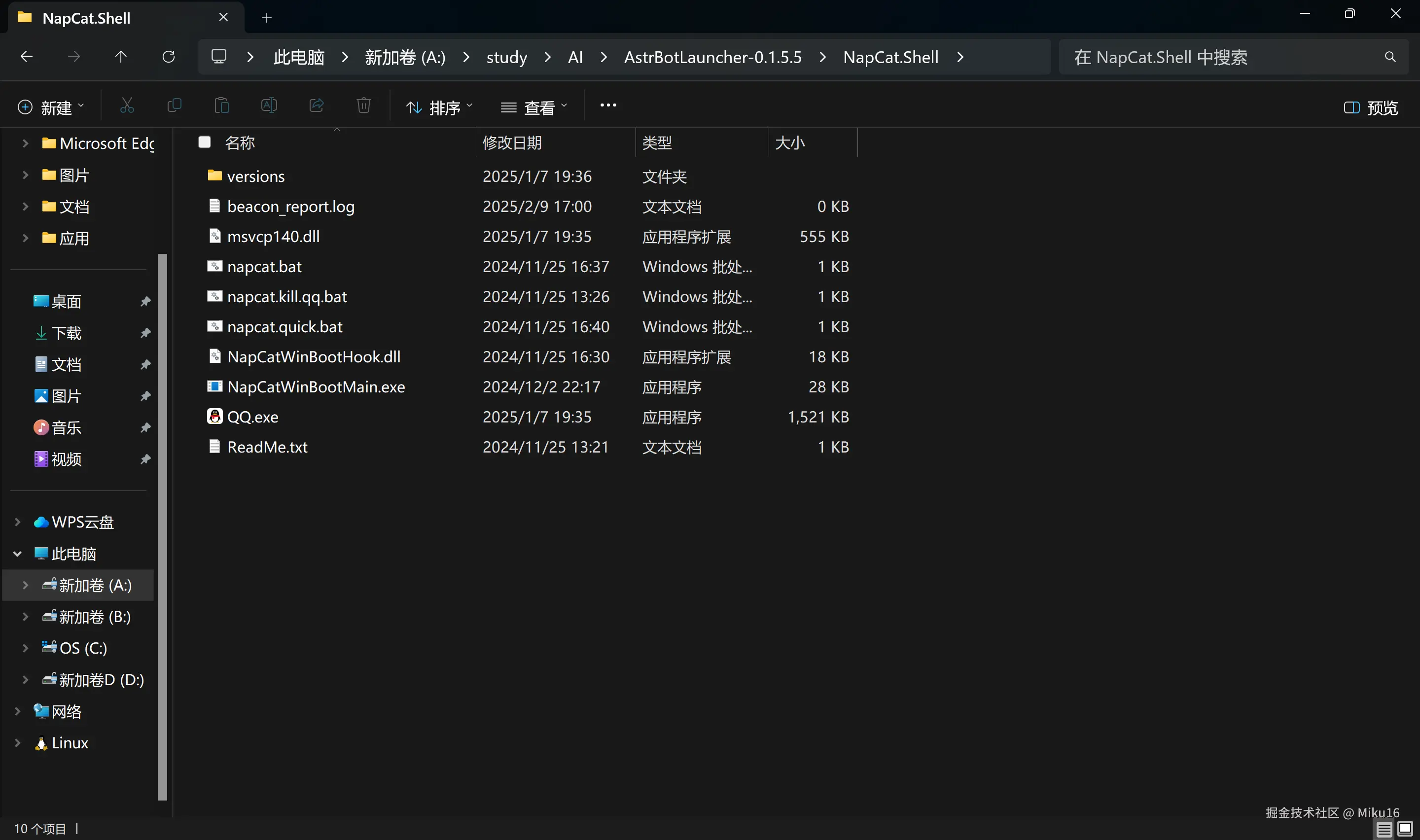 起初我按照win手动启动教程下载了NapCat.Shell.zip,解压后启动launcher.bat脚本,但脚本启动后无法检测到我的QQ安装地址。在官方学习群中请教后,我改用了win64无头版。