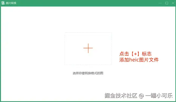 步骤2:点击跳转界面上的【+】标志,即添加heic图片文件至该界面上。