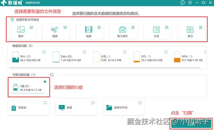U盘损坏怎么恢复数据?使用数据 蛙恢复专家将丢失的U盘找回步骤如下: