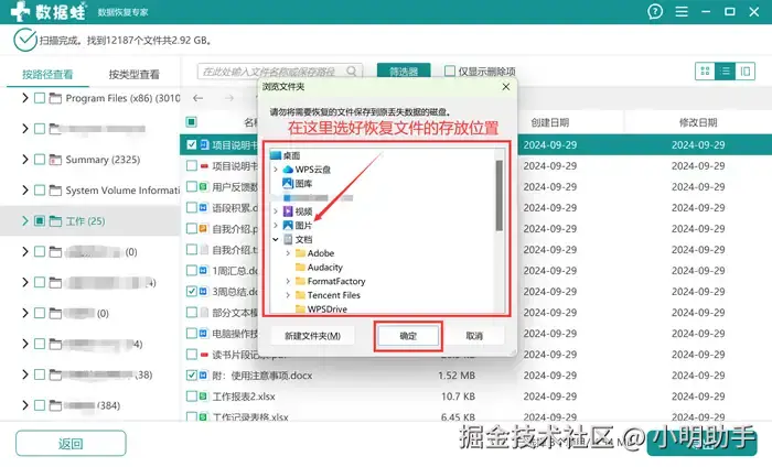 步骤3: 最后为恢复的文件选择存放的合适位置,完成U盘文件恢复。